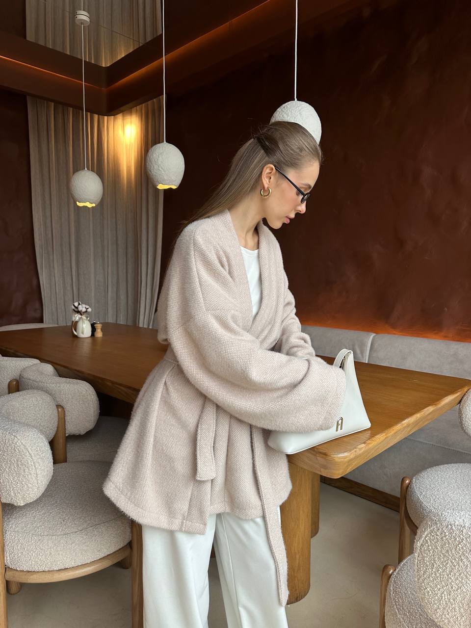 Доставимо новою поштоюПухнастий кардиган з ангори з пояском і широкими рукавами для затишних та стильних образів