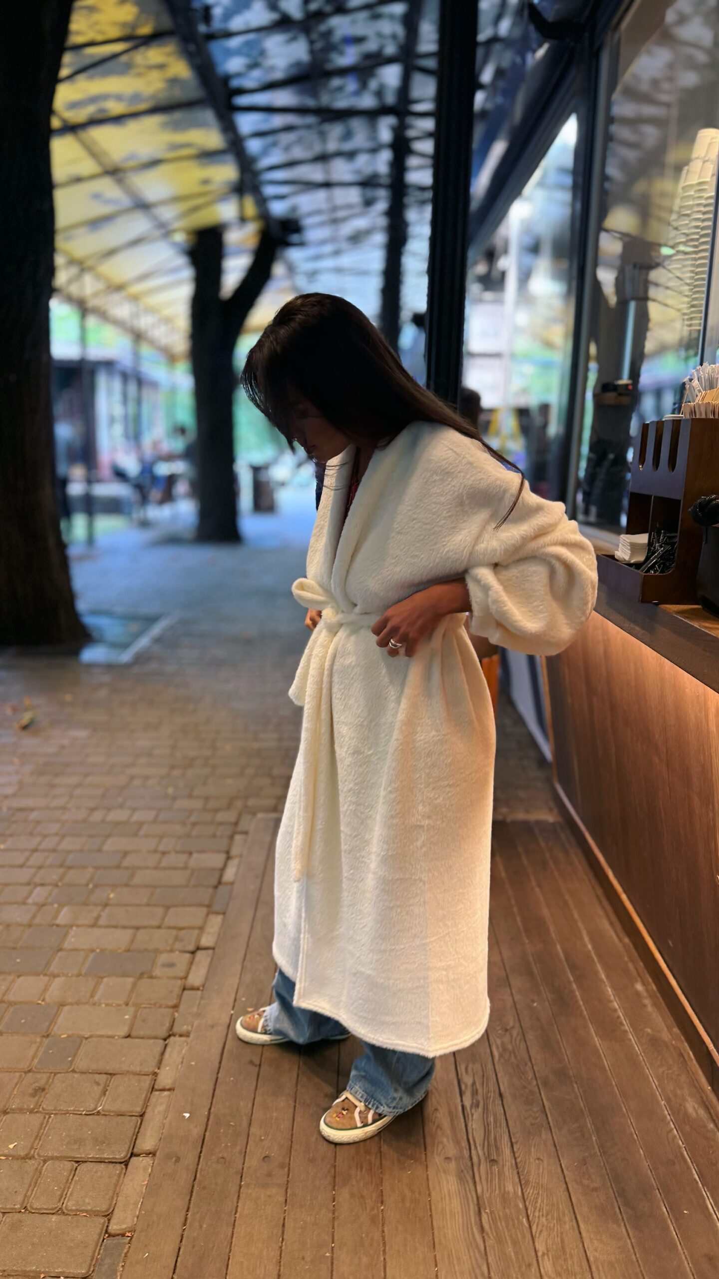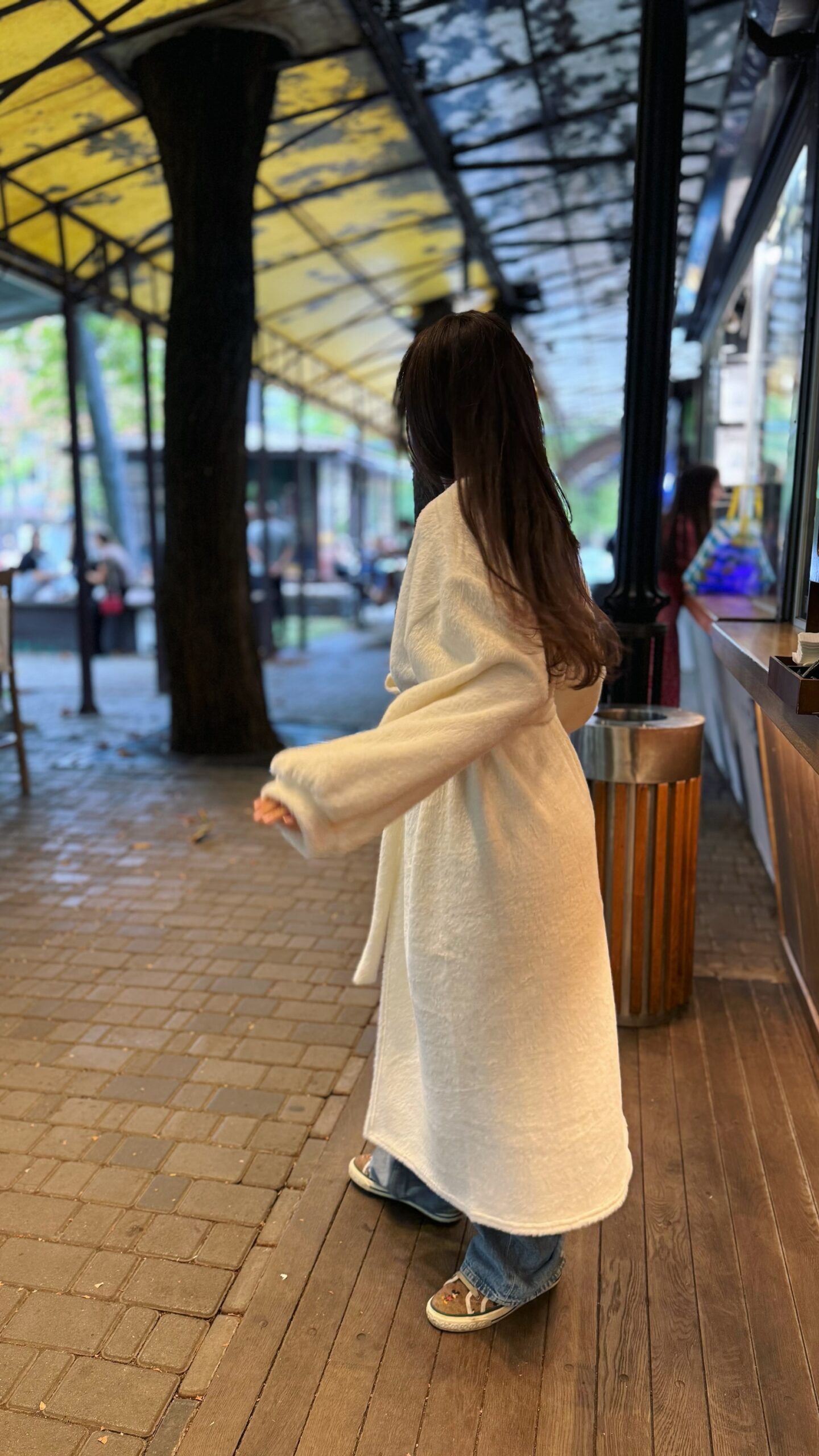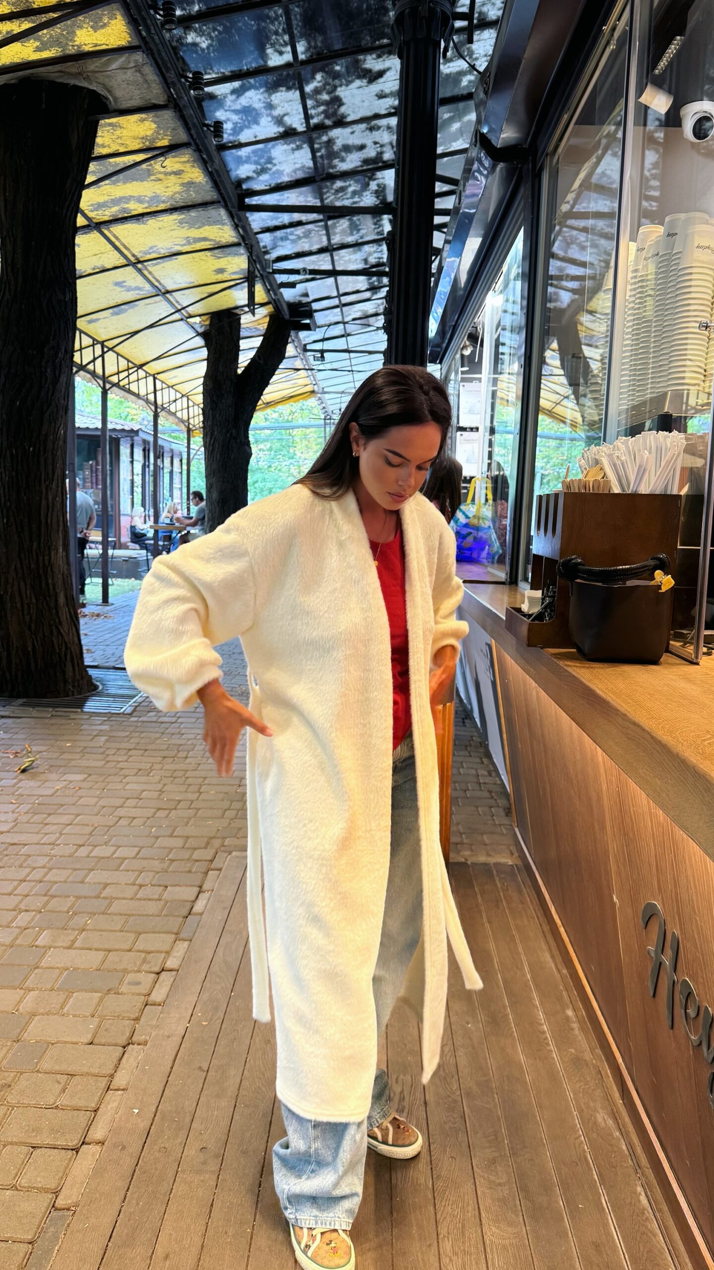 Довгий теплий кардиган “Mink” з поясом, виконаний із м’якої в’язаної тканини з ворсом. Довжина 120 см.