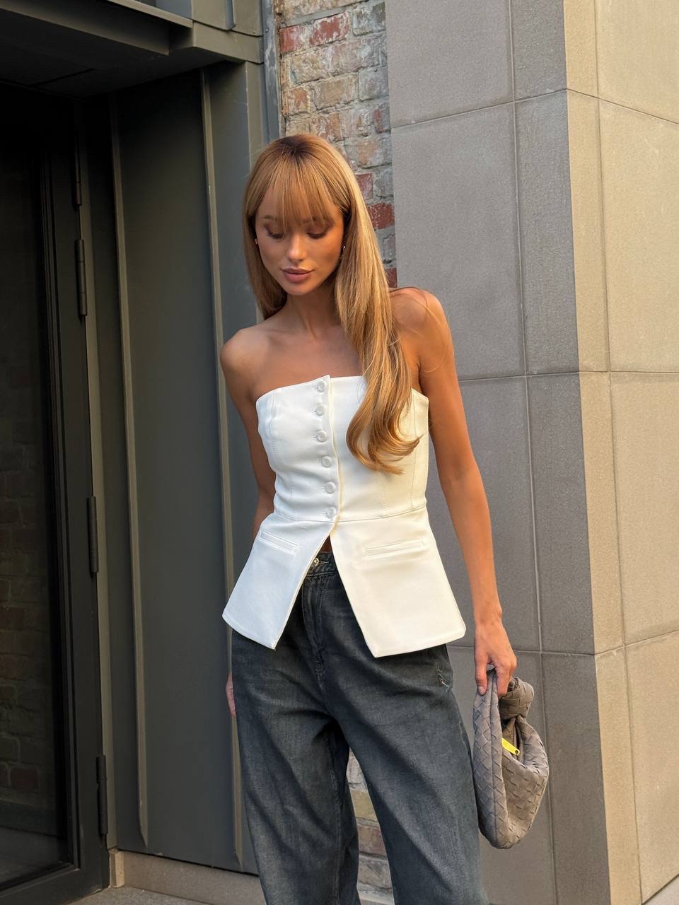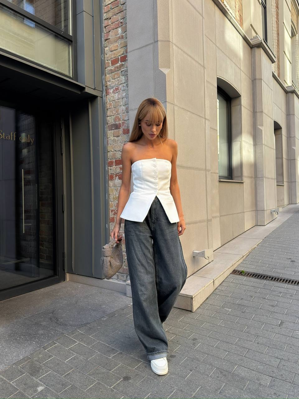 Елегантний корсет із костюмного крепу — вишуканий акцент для стильних образів. Модель із ідеально продуманим кроєм: щільна тканина формує фігуру, а вертикальні рельєфи підкреслюють талію. Застібка на гудзики спереду робить силует витонченим та додає сучасності. Чудово поєднується як з класичними брюками, так і з джинсами чи спідницями, створюючи образ від офіційного до вечірнього.